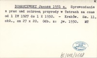 DOMANIEWSKI Janusz 1931 a Sprawozdanie z prac nad ochroną przyrody w Tatrach za czas od 1 IV 1927 do 1 X 1930.