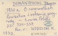 DOMANIEWSKI Janusz 1932 b Wyjaśnienia, które jakby należało sądzić są zbędne.