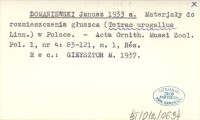 DOMANIEWSKI Janusz 1933 a Materjały do rozmieszczenia głuszcza (Tetrao urogallus Linn.) w Polsce.