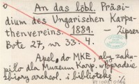 An das löbl. Präsidium des Ungarischen Karpathenvereins. 1889