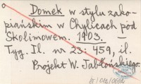 Domek w stylu zakopiańskim w Chylicach pod Skolimowem. 1903