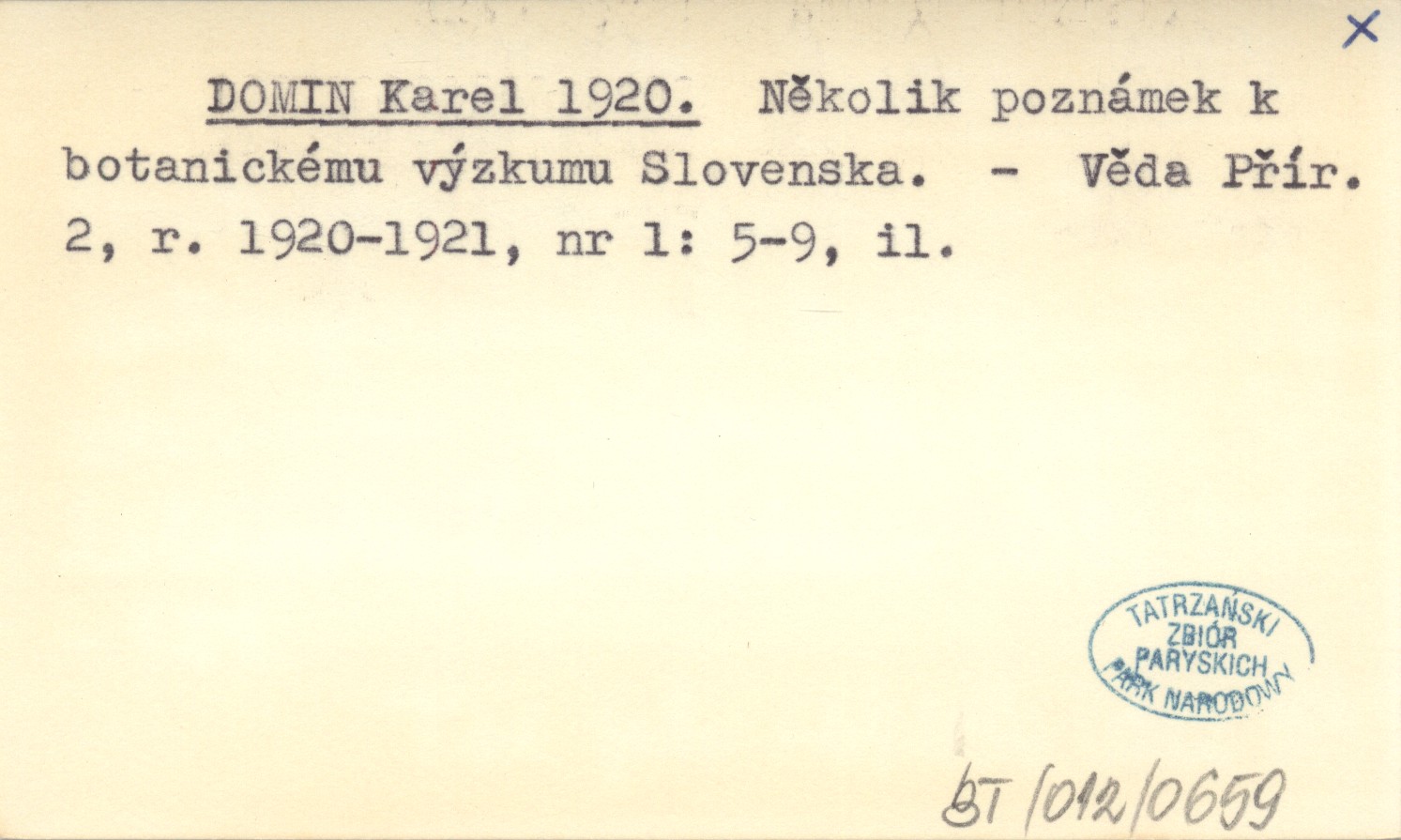 DOMIN Karel 1920 Několik poznámek k botanickému výzkumu Slovenska.