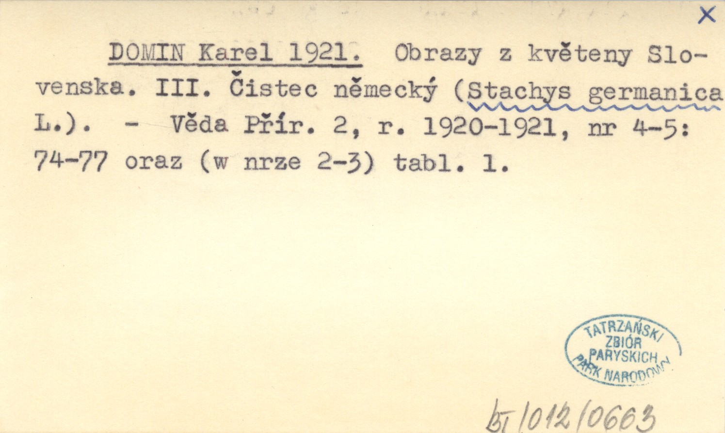 DOMIN Karel 1921 Obrazy z květeny Slovenska. III. Čistec německý (Stachys germanica L.).
