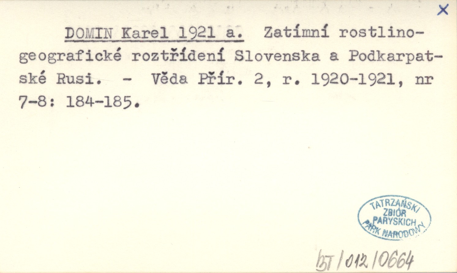 DOMIN Karel 1921 a Zatímní rostlinogeografické roztřídení Slovenska a Podkarpatské Rusi.