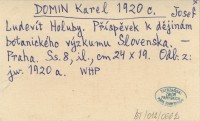 DOMIN Karel 1920 a Josef Ludevít Holuby. (Příspěvek k dějinám botanického výzkumu Slovenska).