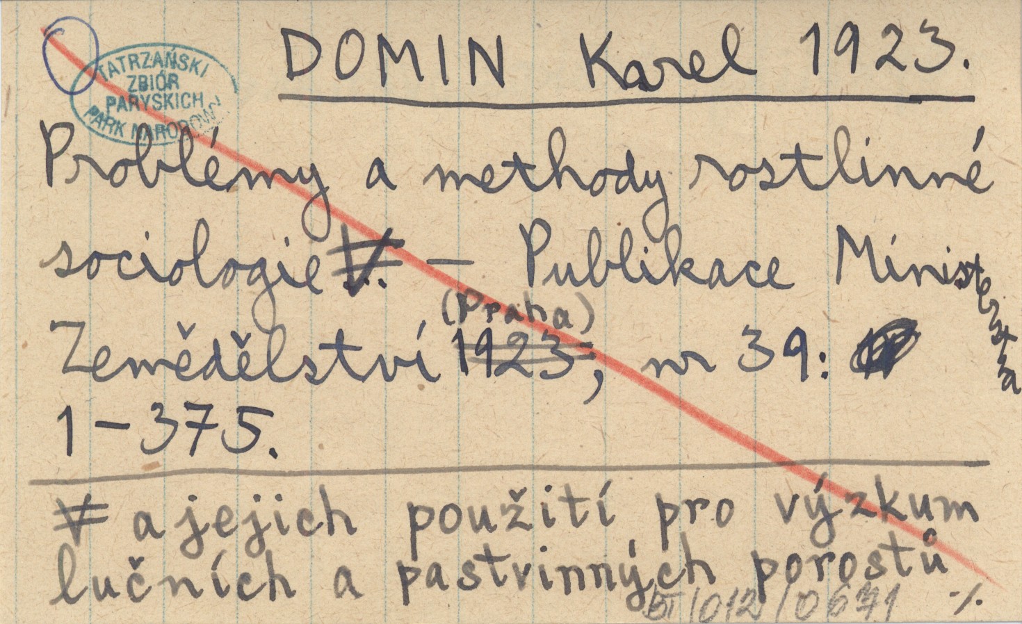 DOMIN Karel 1923 Problémy a methody rostlinné sociologie a jejich pouľití pro výzkum lučních a pastvinných porostů republiky československé.