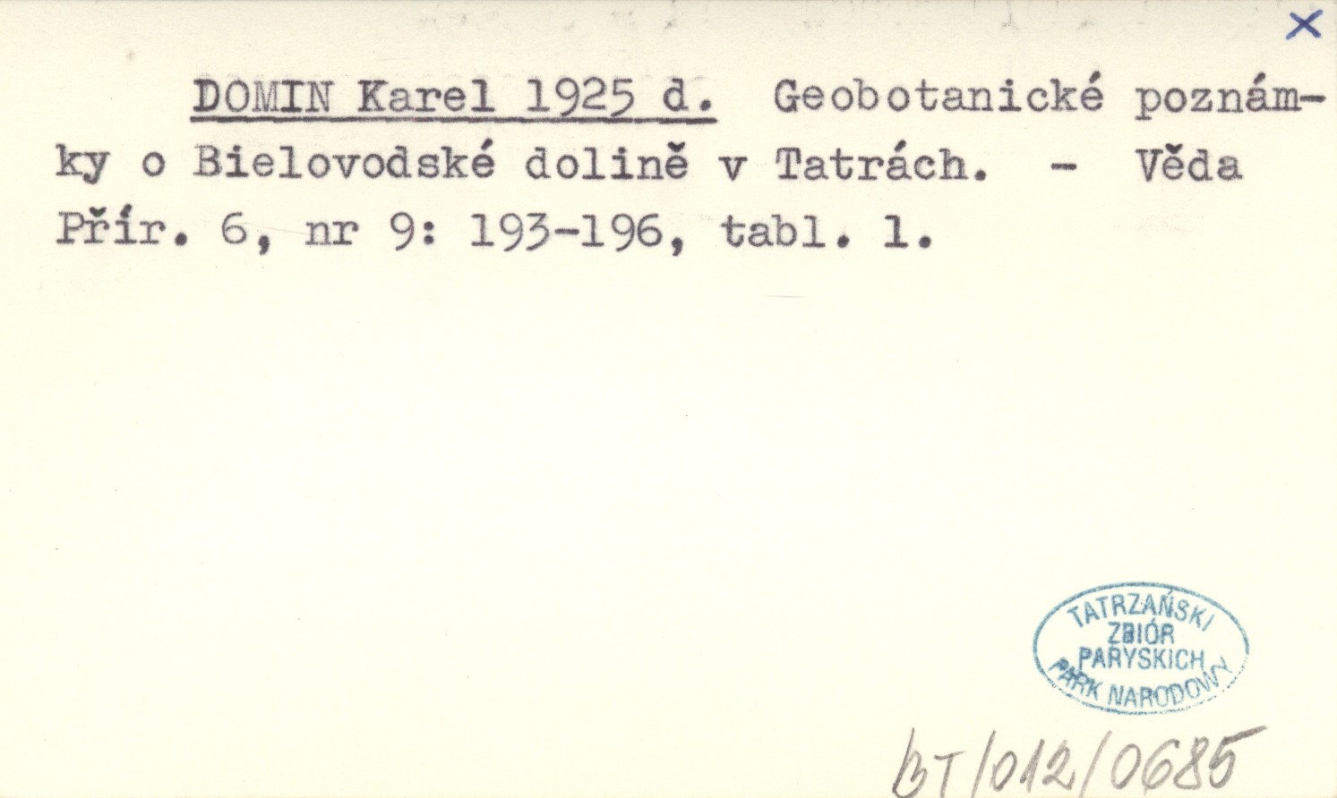 DOMIN Karel 1925 d Geobotanické poznámky o Bielovodské dolině v Tatrách.