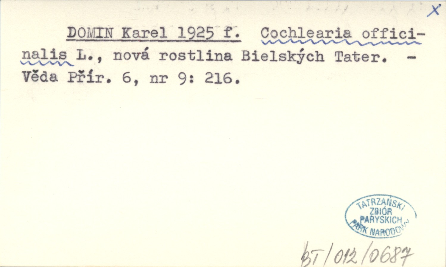 DOMIN Karel 1925 f Cochlearia officinalis L., nová rostlina Bielských Tater.