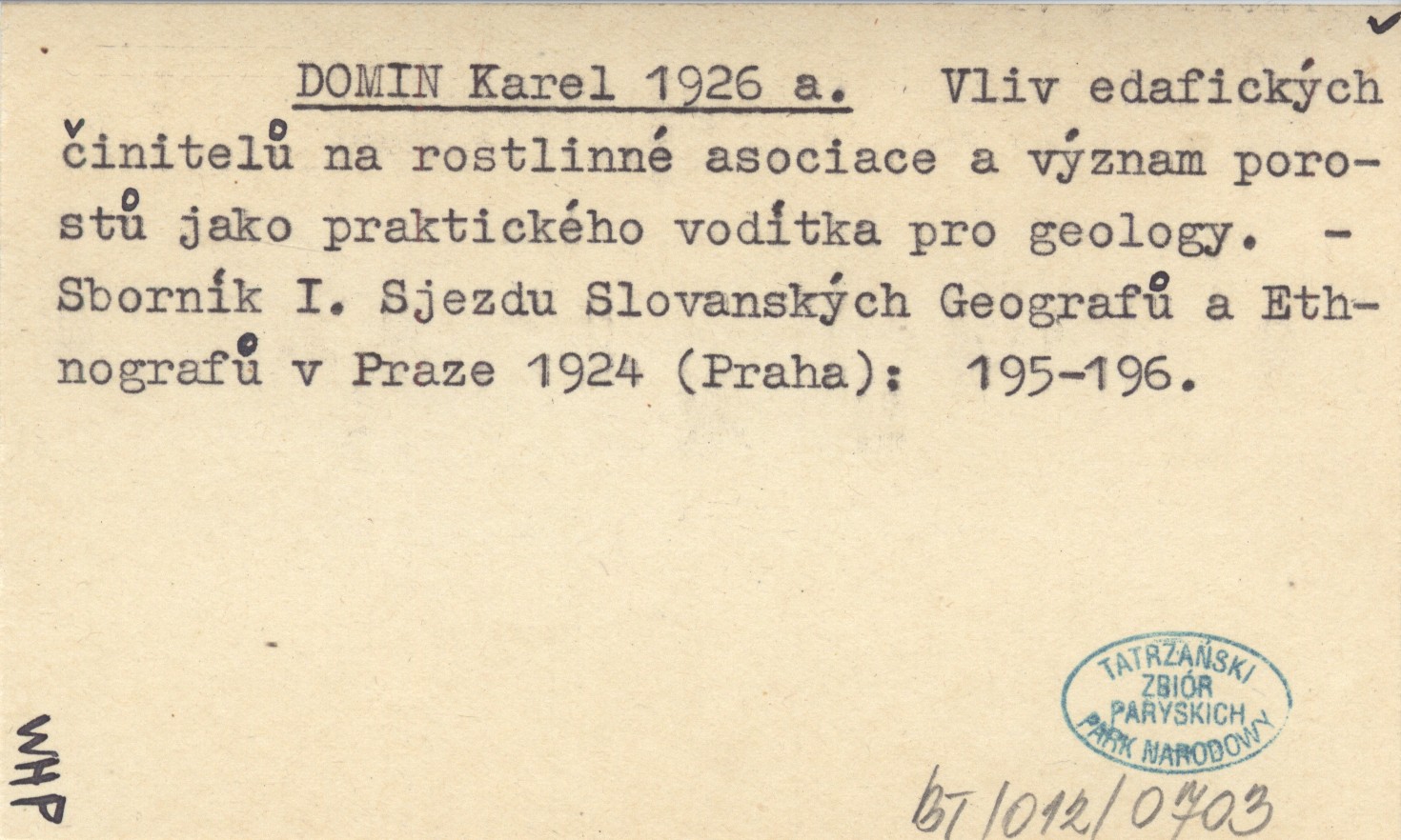 DOMIN Karel 1926 a Vliv edafickęch èinitelù na rostlinné asociace a vęznam porostù jako praktického vodítka pro geology.