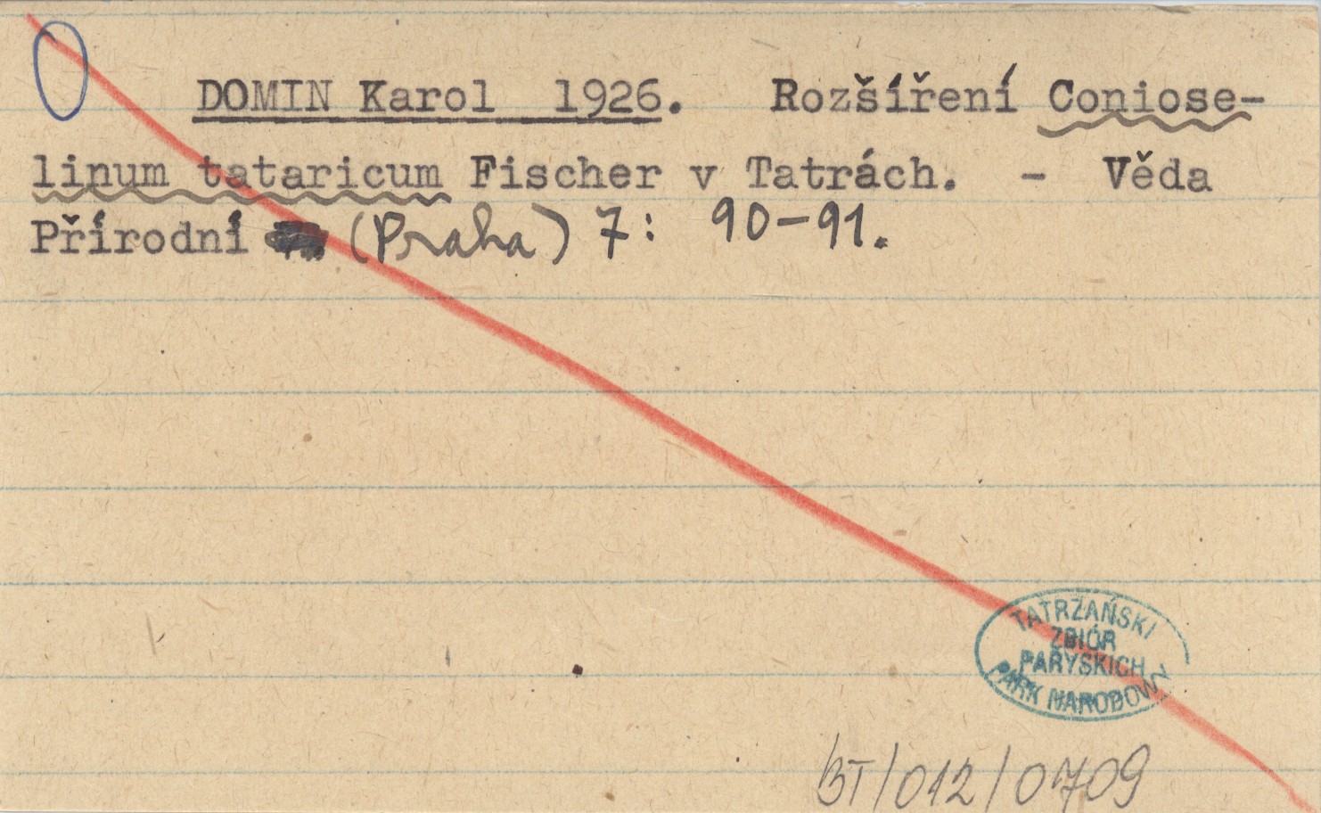 DOMIN Karel 1926 Rozšížení Conioselinum tataricum Foscher v Tatrách.
