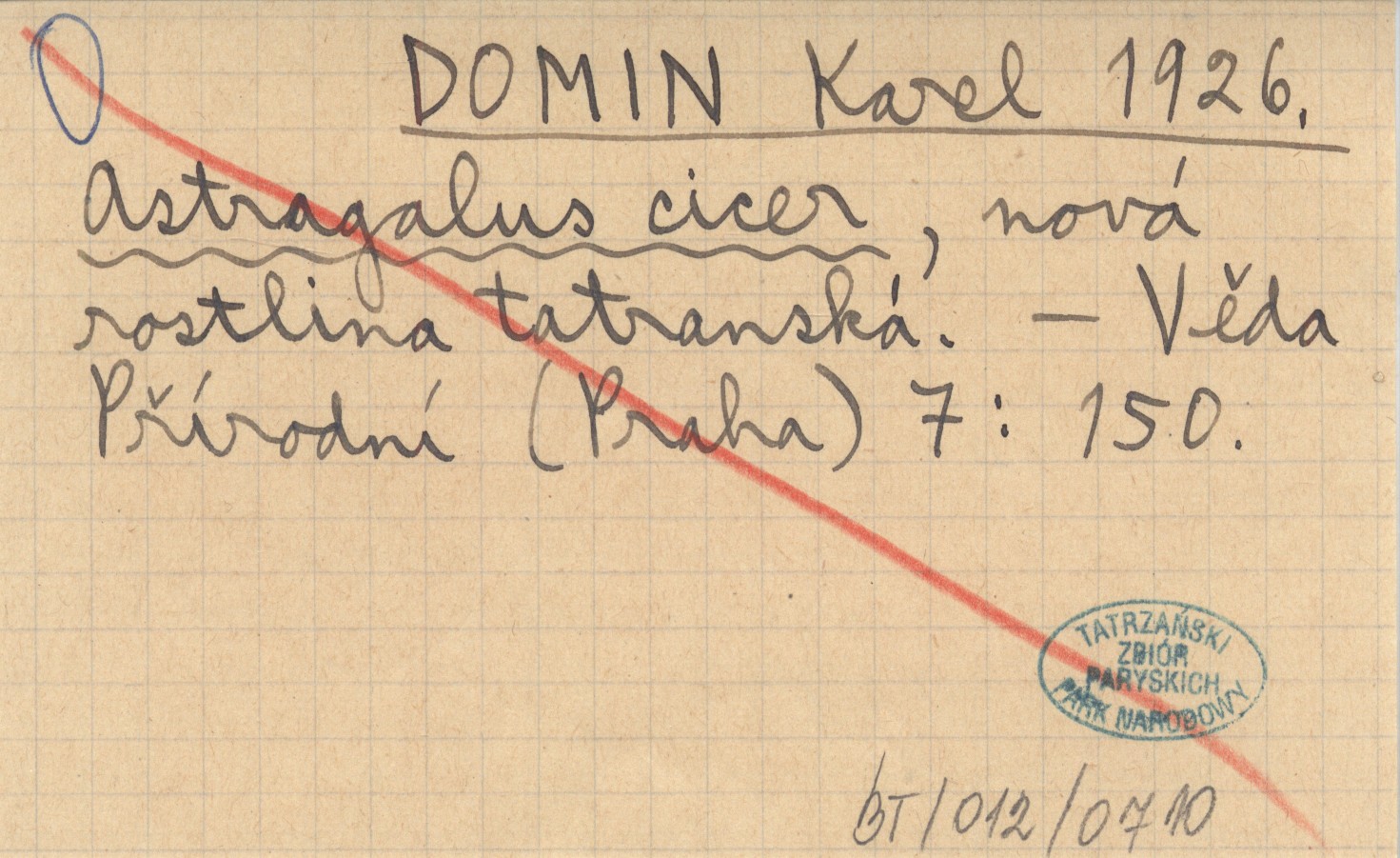 DOMIN Karel 1926 Astragalus cicer, nová rostlina tatranská.