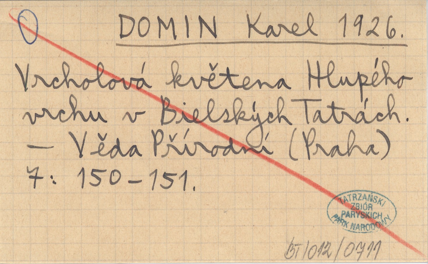 DOMIN Karel 1926 Vrcholová květena Hlupého vrchu v Bielských Tatrách.