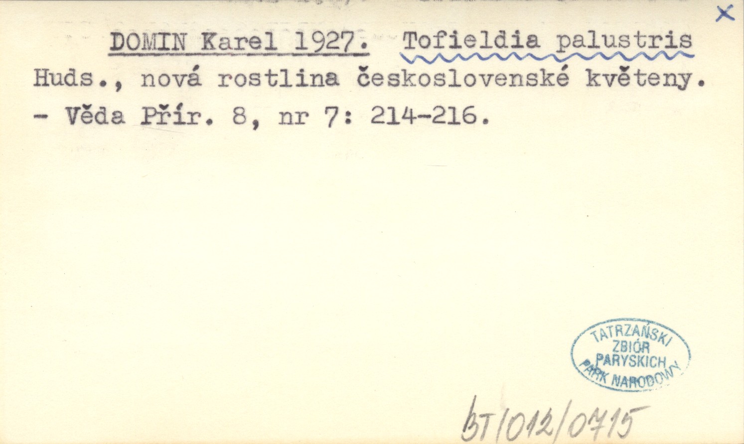 DOMIN Karel 1927 Tofieldia palustris Huds., nová rostlina československé květeny.