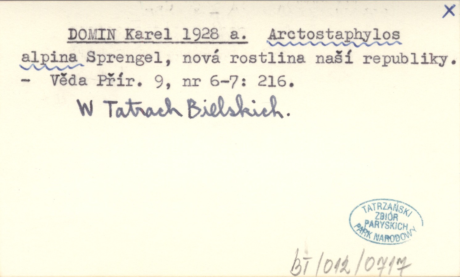 DOMIN Karel 1928 a Arctostaphylos alpina Sprengel, nová rostlina naší republiky.