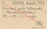 DOMIN Karel 1926 Přírodní park tatranský.