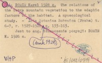 DOMIN Karel 1928 c The relations of the Tatra Mountain vegetation to the edaphic factors of the habitat. A synecological study.