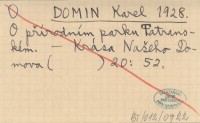 DOMIN Karel 1928... Turistika, zeměpisné názvosloví a ochrana přírody.
