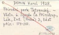 DOMIN Karel 1928 O přírodním parku Tatranském.