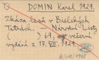 DOMIN Karel 1929 Zkáza lesů v Bielských Tatrách.