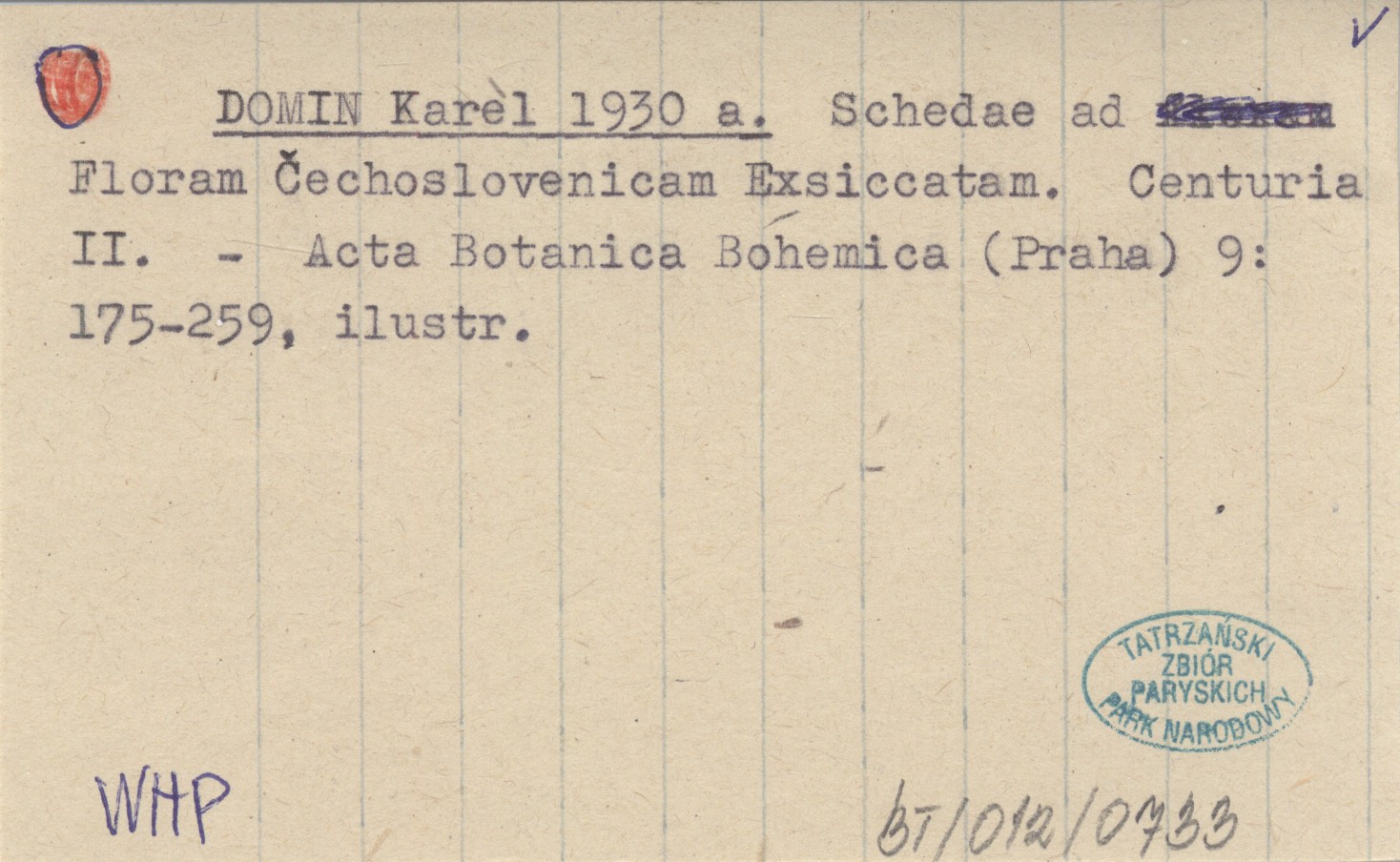 DOMIN Karel 1930 a Schedae ad Floram Čechoslovenicam Exsiccatam. Centuria II.