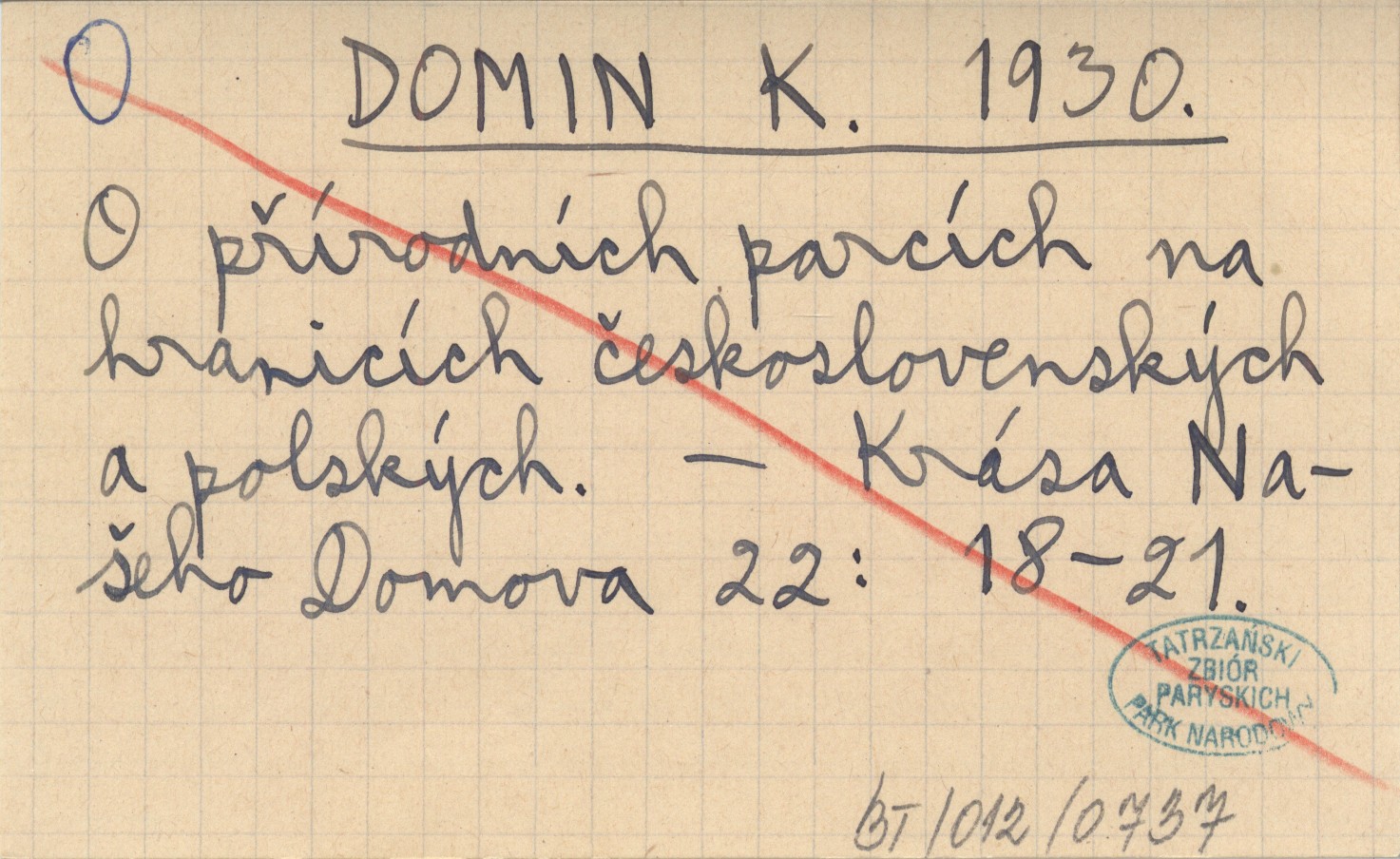 DOMIN K. 1930 P pűírodních parcích na hranicích èeskoslovenskęch a polskęch.