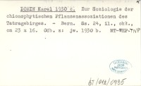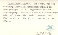 DOMIN Karel 1930 b Zur Soziologie der chionophytischen Pflanzenassoziationen des Tatragebirges.