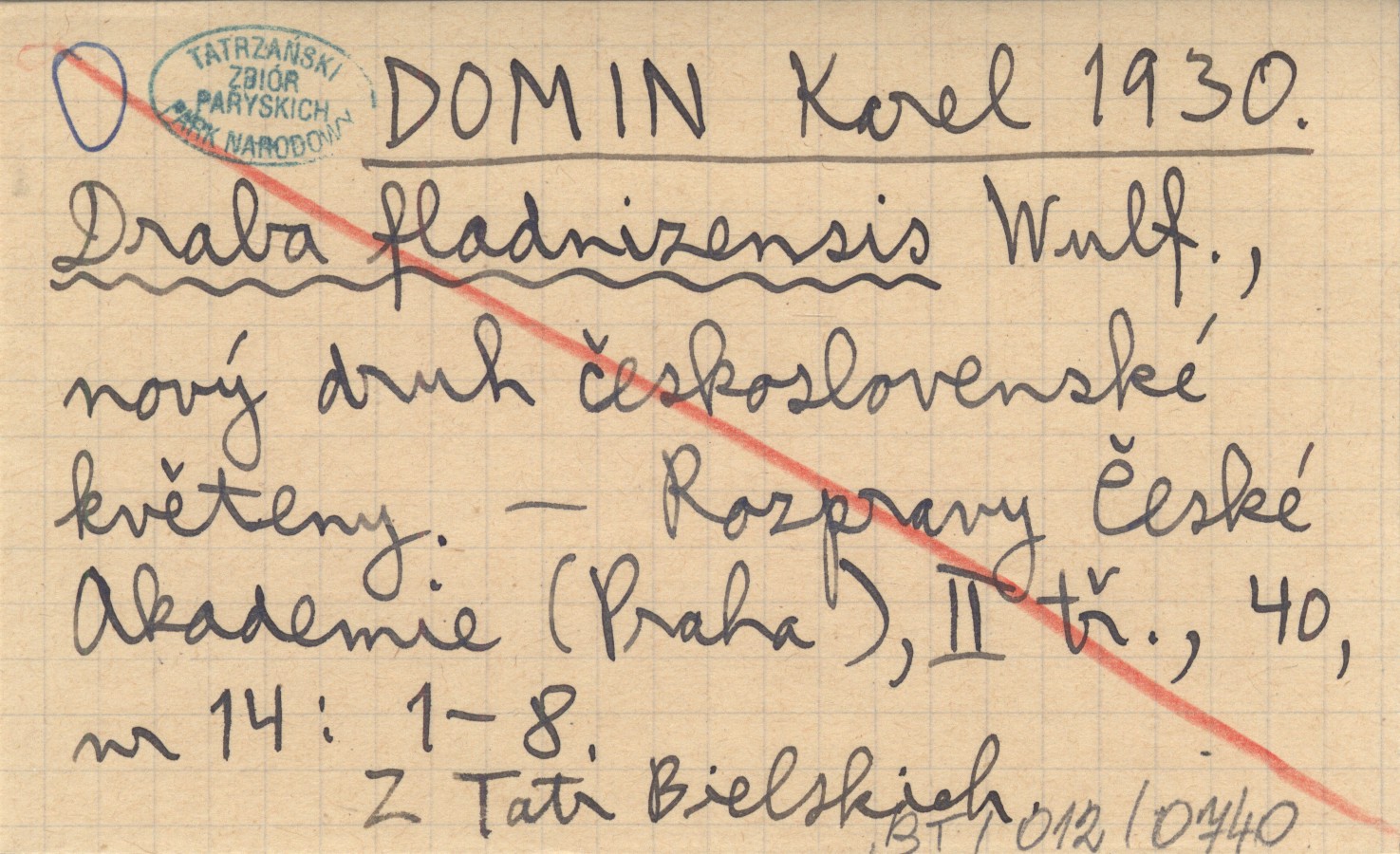 DOMIN Karel 1930 Draba fladnizensis Wulf., nový druh československé květeny.