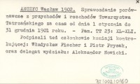 ANCZYC Wacław 1902 Sprawozdanie porównawcze z przychodów i rozchodów Towarzystwa Tatrzańskiego za czas od dnia 1 stycznia do 31 grudnia 1901 roku.