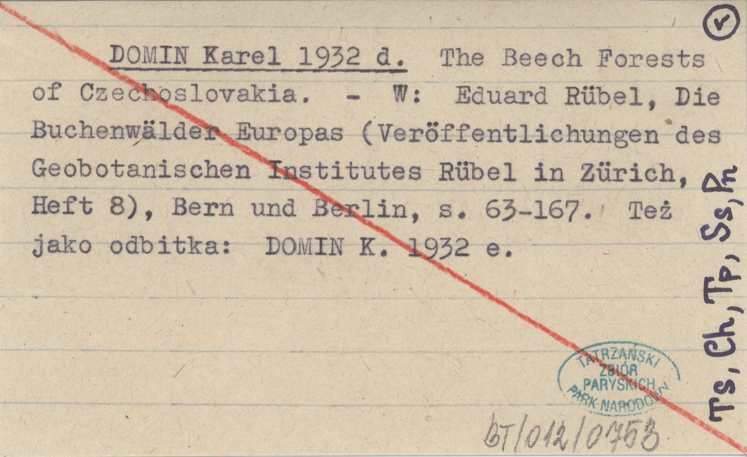 Eduard Rübel, Die Buchenwälder Europas. Bern, Berlin (Veröffentlichungen des Geobotanischen Institutes Rübel in Zürich ; nr 8) , S. 63-167. Też jako odbitka: DOMIN K. 1932 e