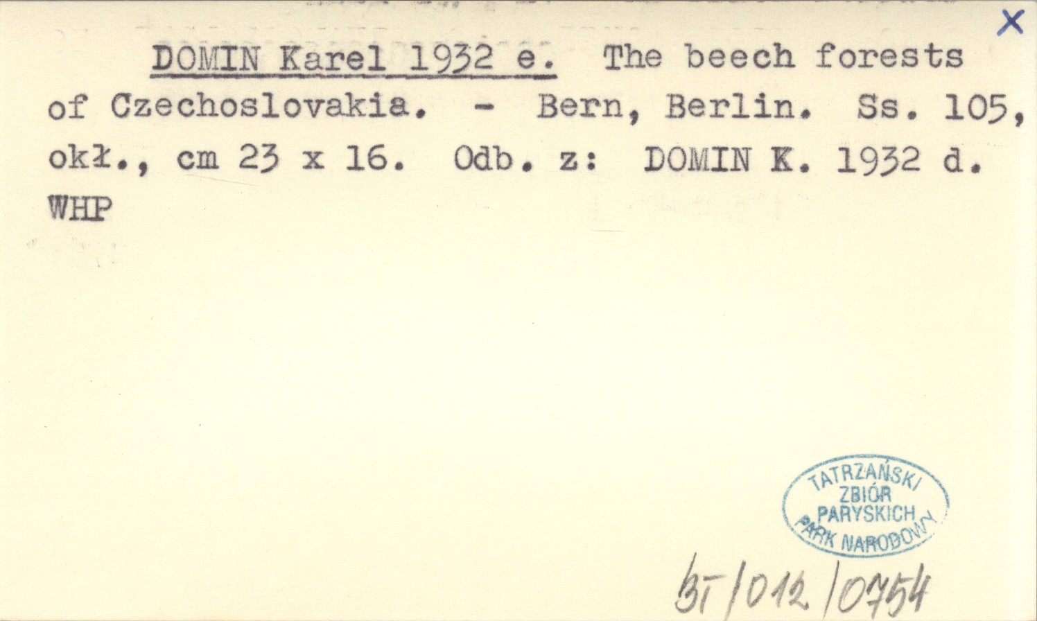 DOMIN Karel 1932 e The beech forests of Czechoslovakia.