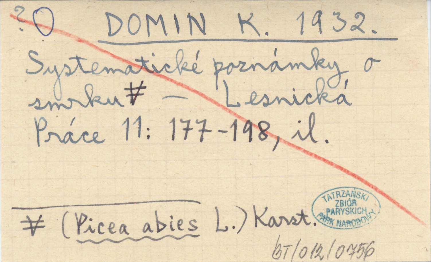 DOMIN K. 1932 Systematické poznámky o smrku (Picea abies L.) Karzt.