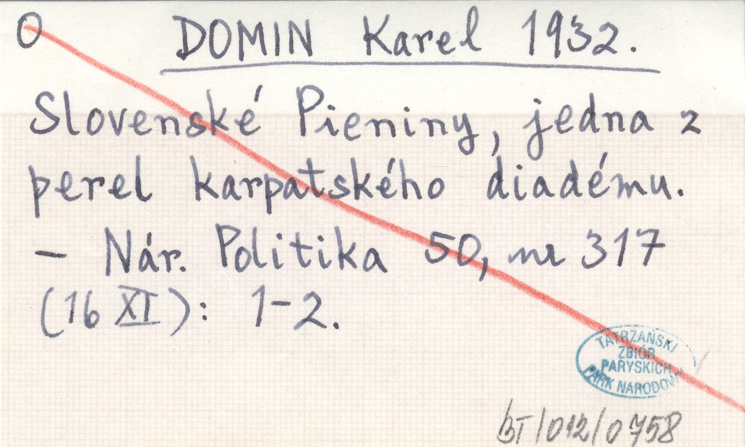 DOMIN Karel 1932 Slovenské Pieniny, jedna z perel karpatského diadému.