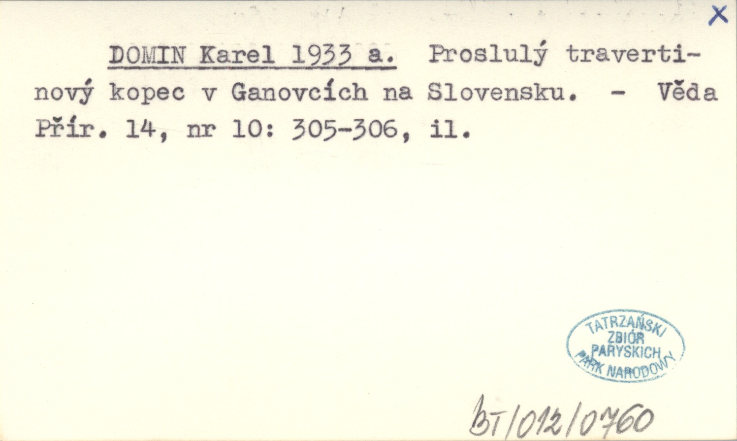 DOMIN Karel 1933 a Proslulý travertinový kopec v Ganovcích na Slovensku.