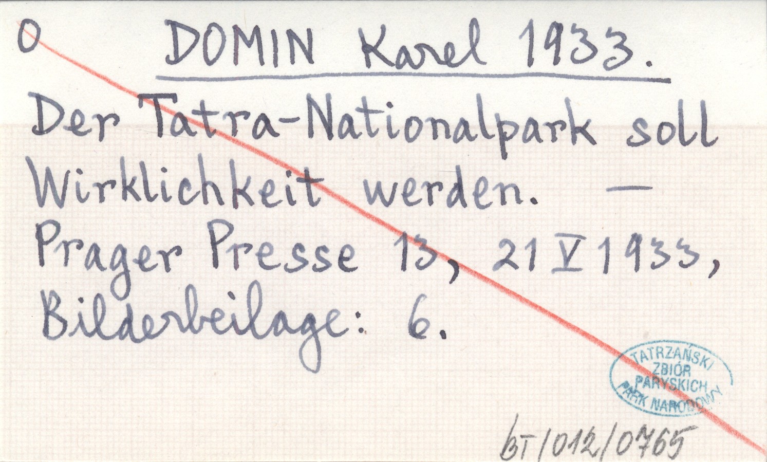 DOMIN Karel 1933 Der Tatra-Nationalpark soll Wirklichkeit werden.