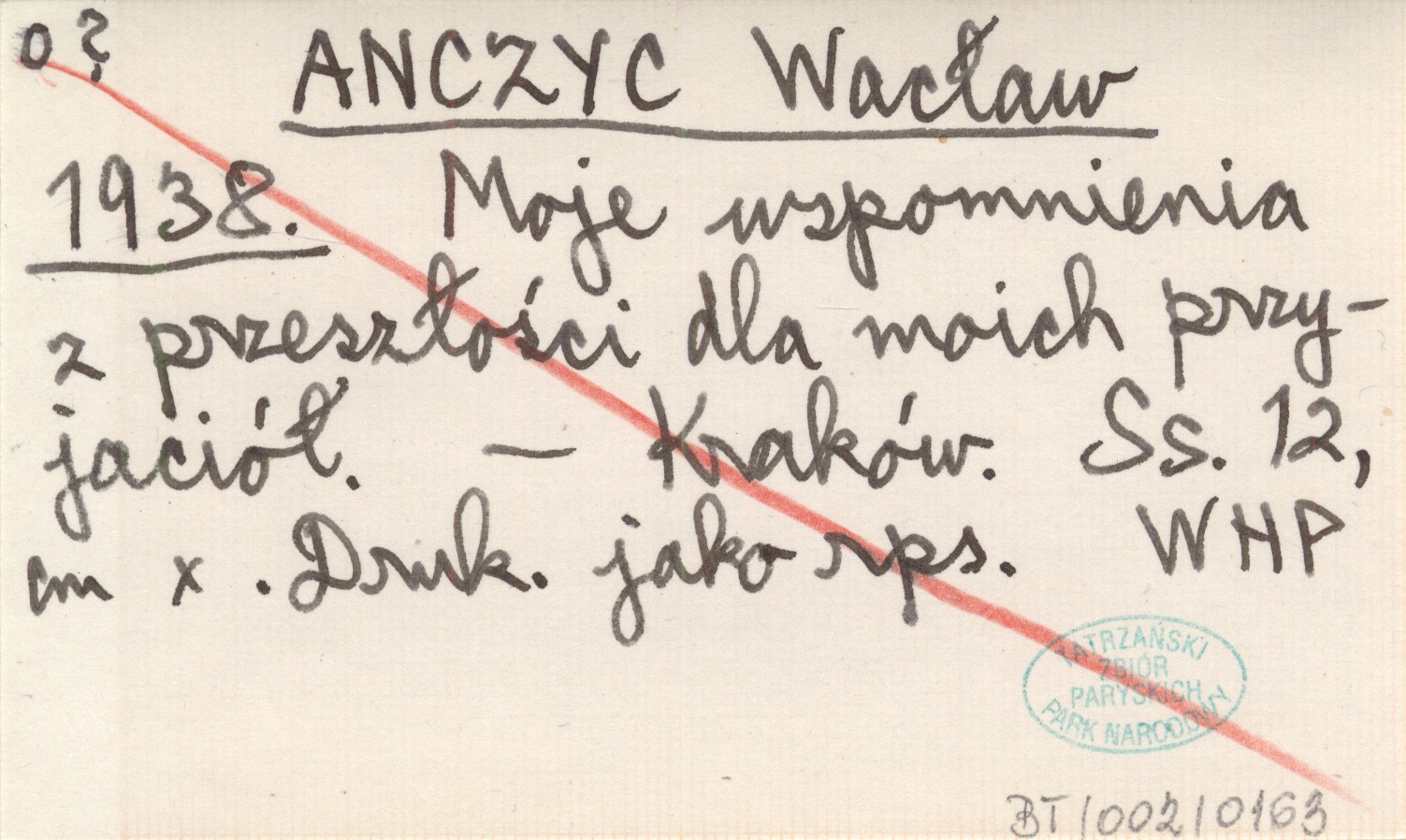 ANCZYC Wacław 1938 Moje wspomnienia z przeszłości dla moich przyjaciół.