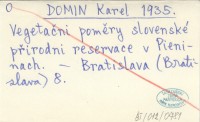 DOMIN Karel 1935 Vegetačni poměry slovenské přirodni reservace v Pieninach.