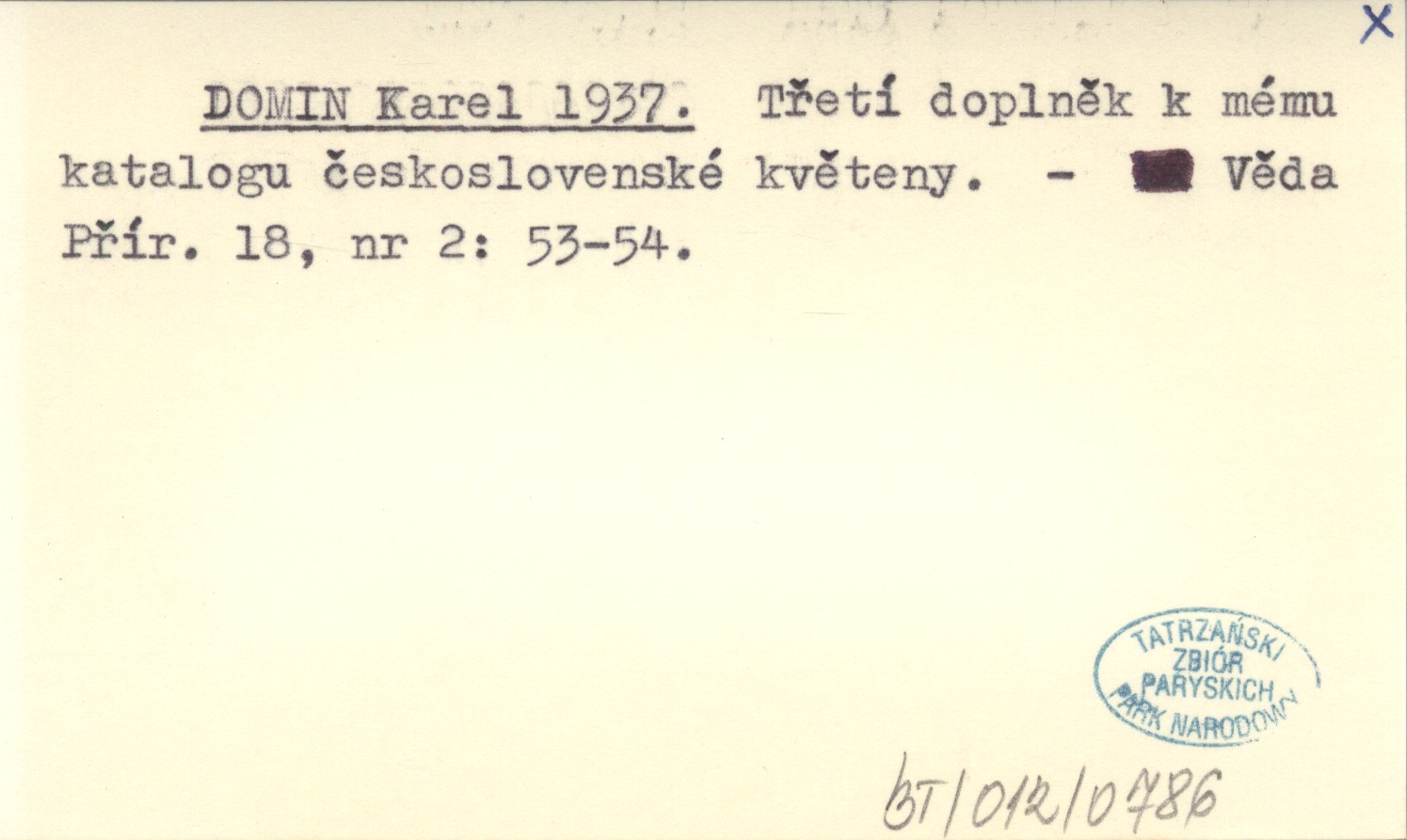 DOMIN Karel 1937 Třetí doplněk k mému katalogu československé květeny.