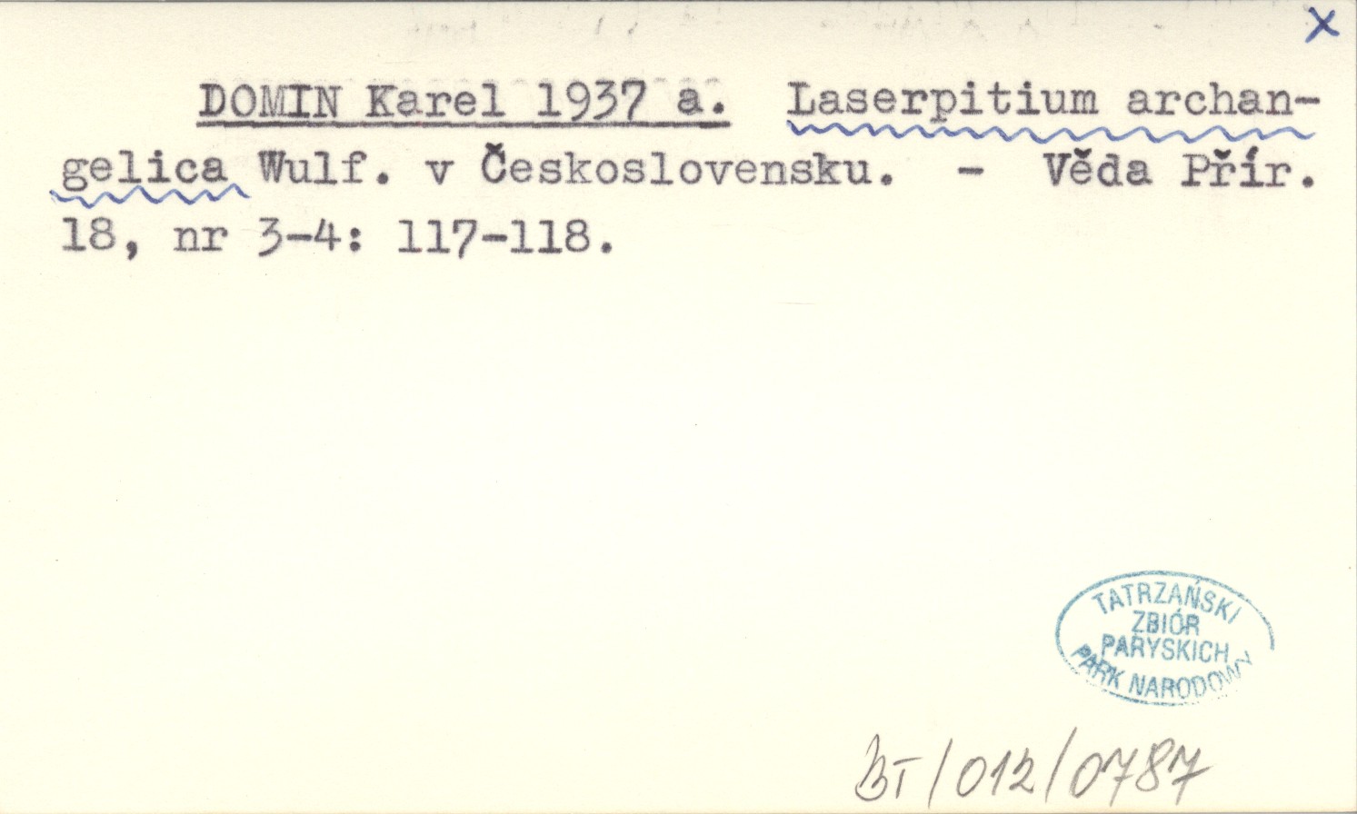 DOMIN Karel 1937 a Laserpitium archangelica Wulf. v Československu.