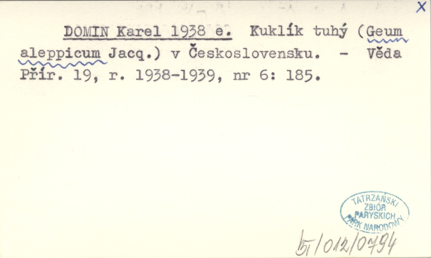 DOMIN Karel 1938 e Kuklík tuhý (Geum aleppicum Jacq.) v Československu.