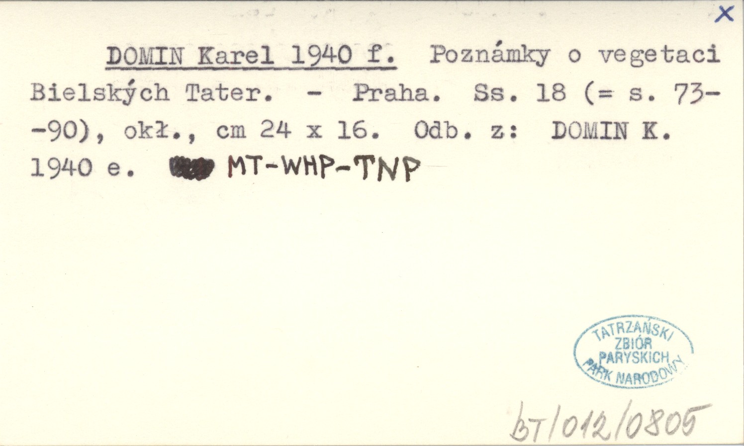 DOMIN Karel 1940 f Poznámky o vegetaci Bielských Tater.