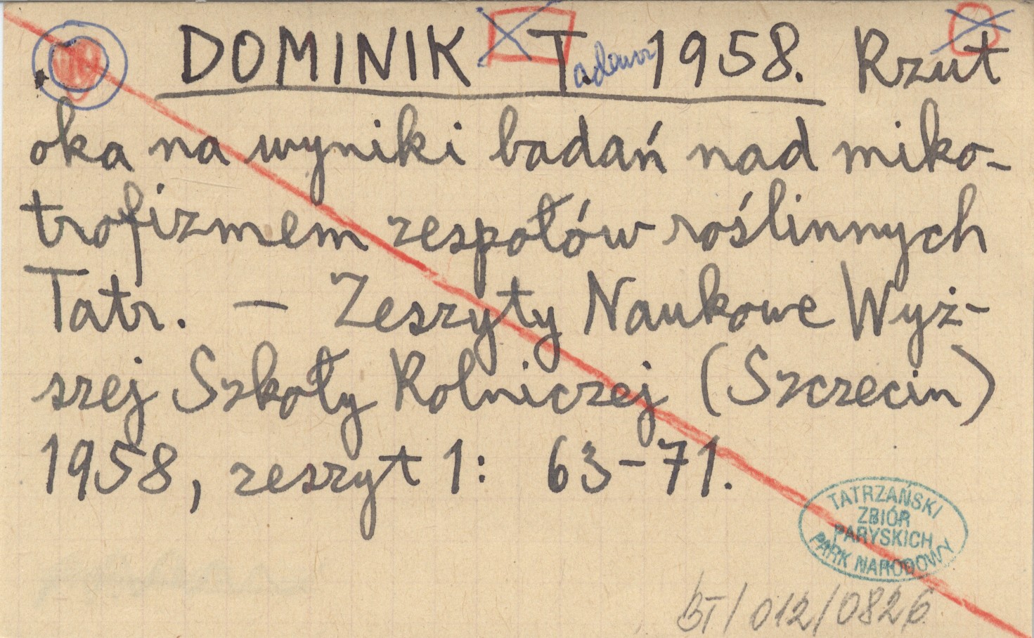 DOMINIK Tadeusz 1958 Rzut oka na wyniki badań nad mikotrofizmem zespołów roślinnych Tatr.