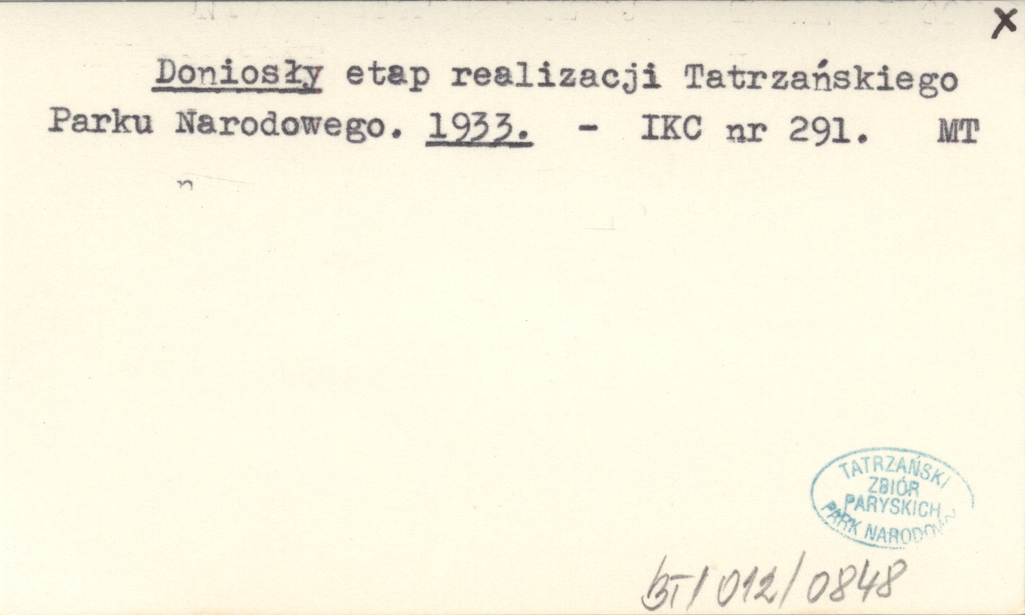 Doniosły etap realizacji Tatrzańskiego Parku Narodowego. 1933