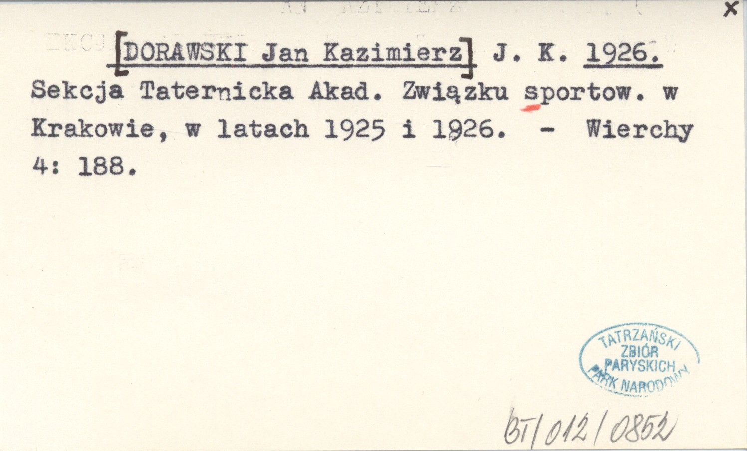 J. K. [DORAWSKI Jan Kazimierz] 1926 Sekcja Taternicka Akad. Związku sportow. w Krakowie, w latach 1925 i 1926.