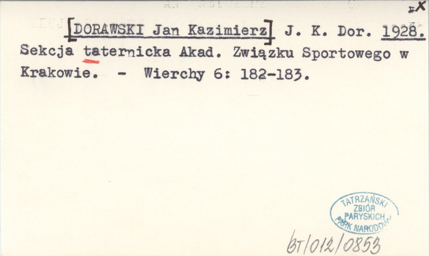 J. K. Dor. [DORAWSKI Jan Kazimierz] 1928 Sekcja taternicka Akad. Związku Sportowego w Krakowie.
