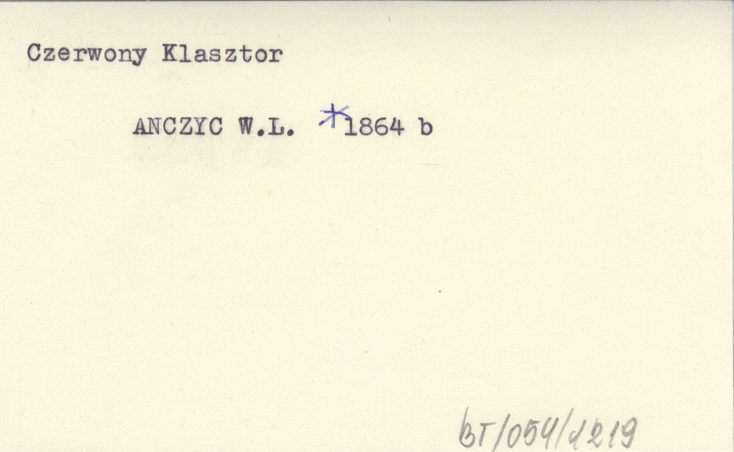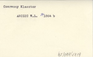 ANCZYC Władysław Ludwik 1864 b Czerwony Klasztor w Pieninach.