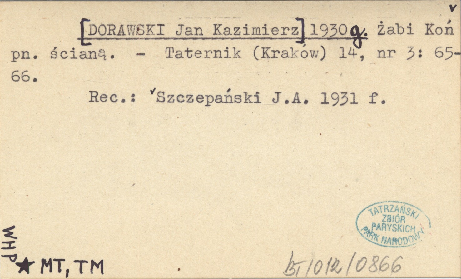 Taternik (Kraków) , 14, nr 3: 65-66. REC: SZCZEPAŃSKI J. A. 1931 f