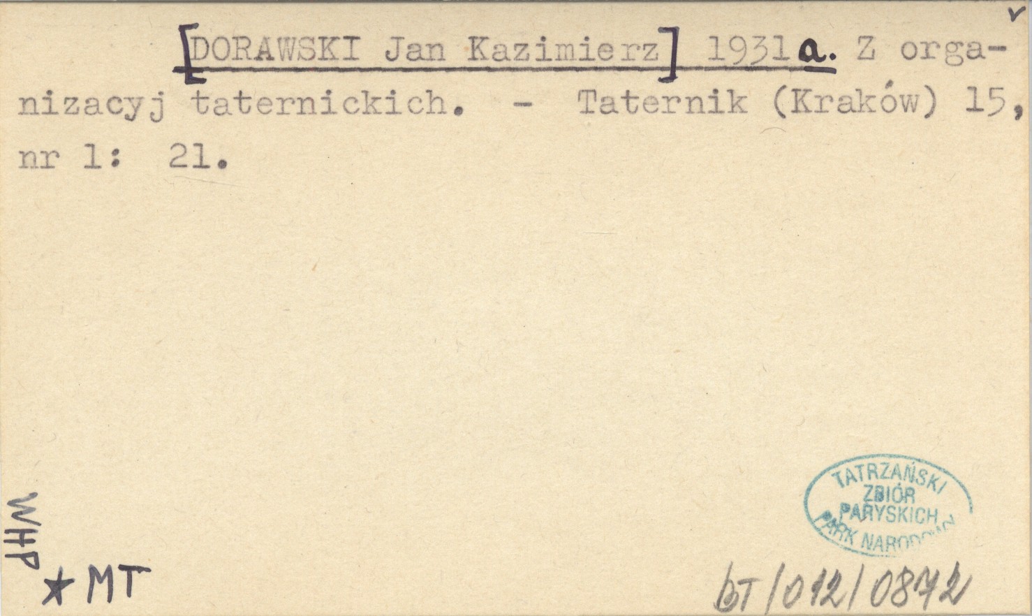 [DORAWSKI Jan Kazimierz] 1931 a Z organizacyj taternickich.