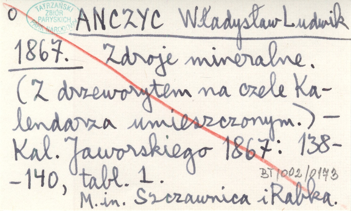 ANCZYC Władysław Ludwik 1867 Zdroje mineralne. (Z drzeworytem na czele Kalendarza umieszczonym).