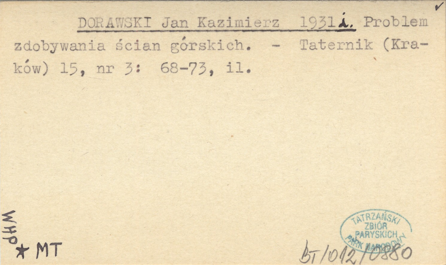 DORAWSKI Jan Kazimierz 1931 i Problem zdobywania ścian górskich.
