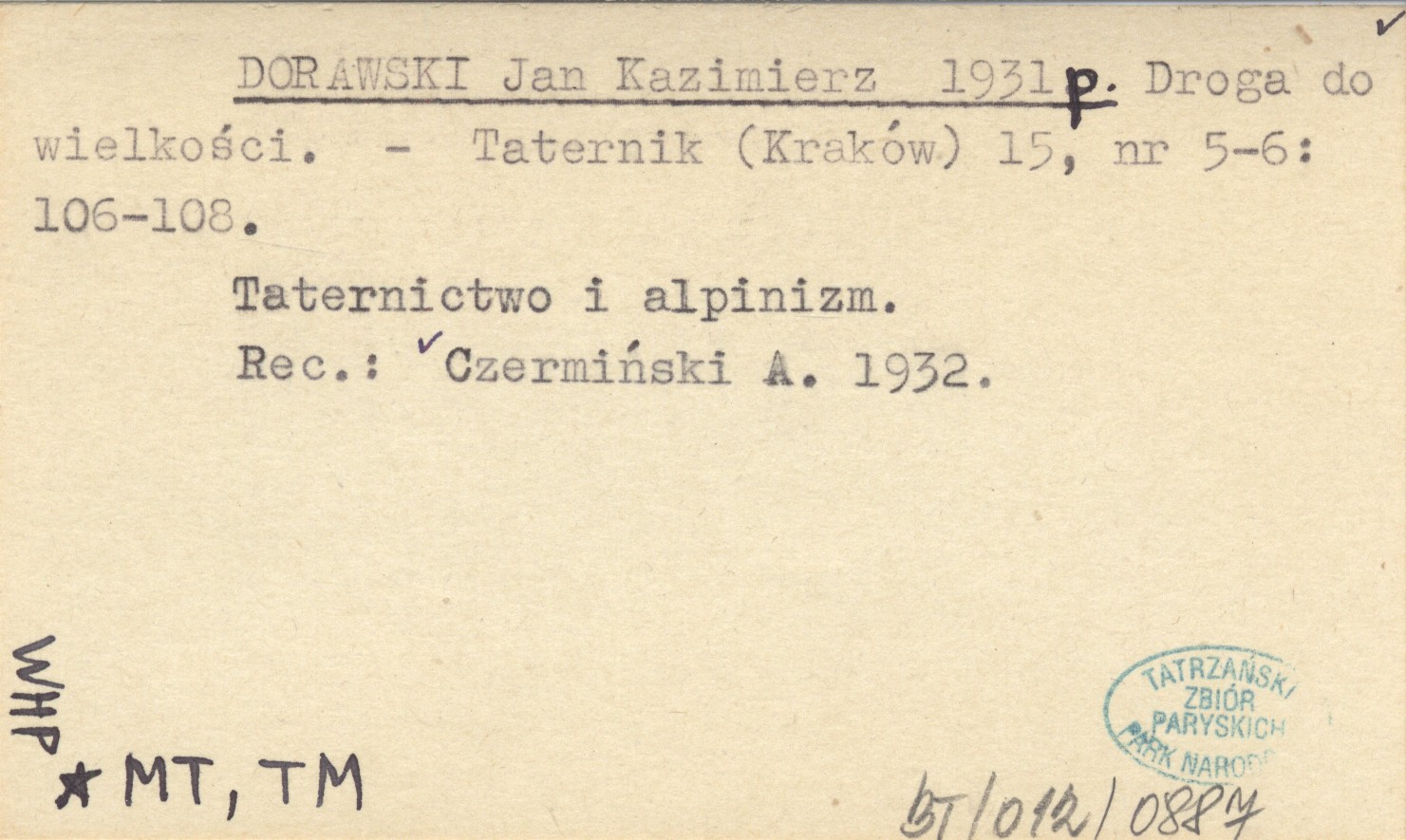Taternik (Kraków) , 15, nr 5-6: 106-108. Taternictwo i alpinizm. REC: CZERMIŃSKI A. 1932